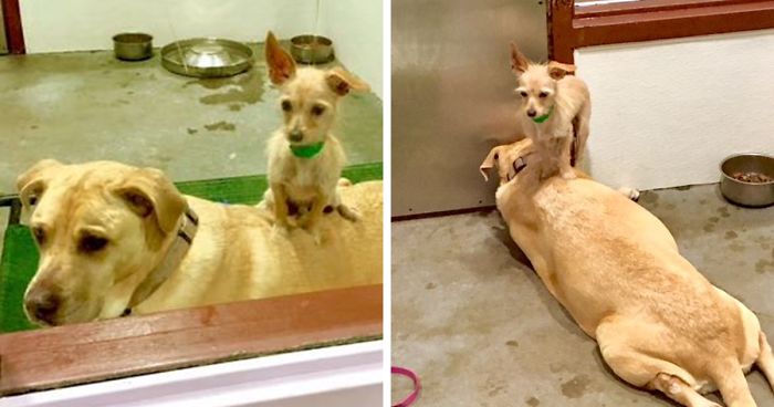 The adorable duo was found wandering the streets of Arizona as strays and taken to Maricopa County Animal Care & Control (MCACC). There, the staffers immediately recognized the two were buddies, but were still surprised to see Clyde atop Bonnie.