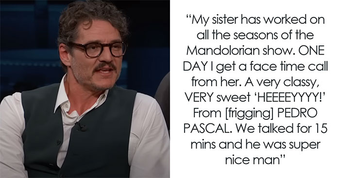 My sister has worked on all the seasons of the Mandolorian show so far and is also helping with the movie. Pedro got to befriend her and ONE DAY while I’m on the d**n toilet in the morning, I get a face time call from her.
