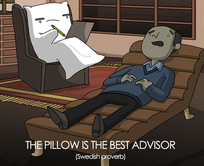From Kenya and Sweden to popular idioms in Ethiopia and Russia, Chapman shows us how different countries often interpret well-known proverbs (sleeping on a problem/judging a book by its cover/nothing last forever) while also introducing us to funny idioms that we might have never heard before. Like his work? Then head on over to Etsy where you can find a whole bunch of merchandise for sale.