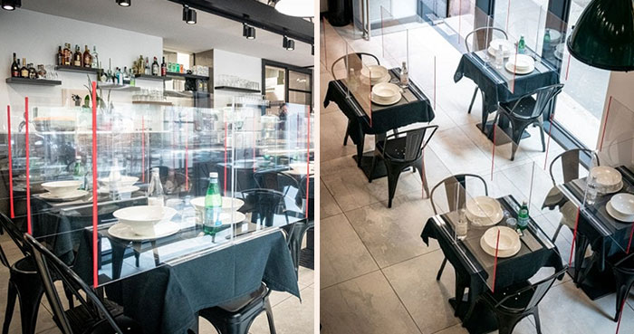 On Monday, millions of people in Italy were allowed to return to work as the government starts to slowly relax the severe measures it put into place back in March. In anticipation of further restrictions being lifted, various businesses are preparing to start running again, however, whatever image we had of normal life is now changing. Restaurants are installing plexiglass sheets between and across tables to protect customers from the potential risk of getting infected with the Coronavirus.