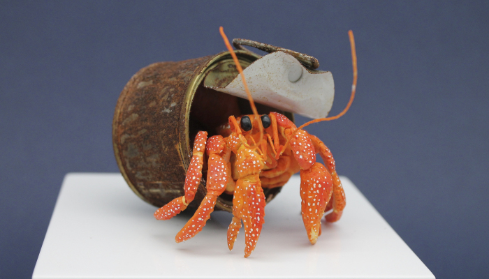 A Hermit crab living in an old tin can