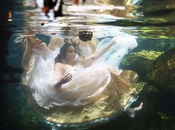 Her wedding dress was no longer a symbol of joy and anticipation, so she had no problem diving into the sea with it