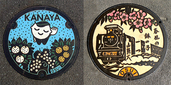 Each municipality takes pride in its manhole cover design, which can display anything from municipal symbols and local landscapes to abstract patterns or illustrations of local legends. There’s even a Japan Society of Manhole Covers!