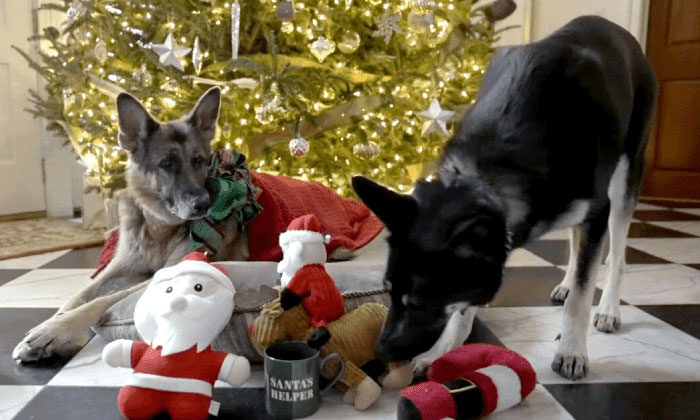 In the fun video, Champ is seen calmly laying under the Christmas tree surrounded by presents, relaxing and enjoying the evening. At the same time, the energetic Major is captured relentlessly running around the house and playing with his toys. “No matter how you celebrate, Merry Christmas,” reads the message shown at the end of the video.