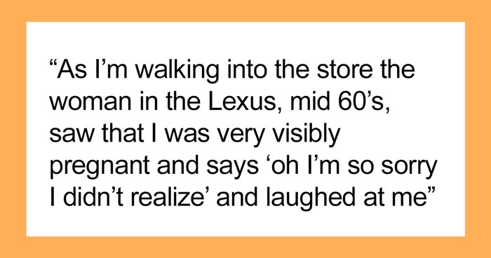 Both drivers got out of their cars almost at the same time – and the original poster was very surprised to see that the owner of the Lexus was a woman in her mid-60s, and most likely not an expecting mom at all. Seeing the OP, she laughed and said: “Oh, I’m so sorry, I didn’t realize!” At that moment, the author, in her own words, could not restrain herself – on the one hand, resentment, on the other, hormones – so she coldly retorted: “You’re obviously not that sorry, since you parked in a spot you shouldn’t have!”
