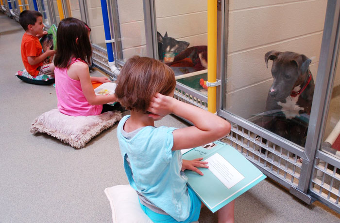 Kids read to shelter dogs not only to keep them company but also to make them more adoptable