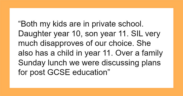 Yet again, we dive into a story about a family feud that erupted 3 weeks before OP’s sister-in-law’s wedding, where her daughter was set to be a bridesmaid and her son an usher. Both her kids are in a private school, but her sister-in-law disapproves of this as her kid is in another school.