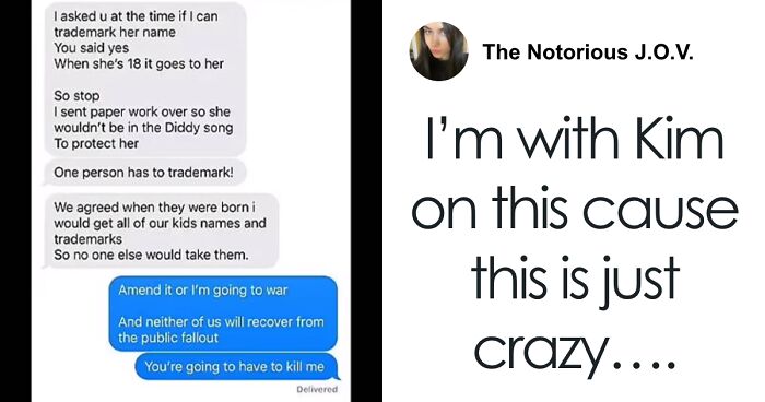 Kim, who is studying to become a lawyer, replied, “I asked u at the time if i can trademark her name. You said yes. When she’s 18 it goes to her. So stop. I sent paper work over so she wouldn’t be in the Diddy song To protect her.”