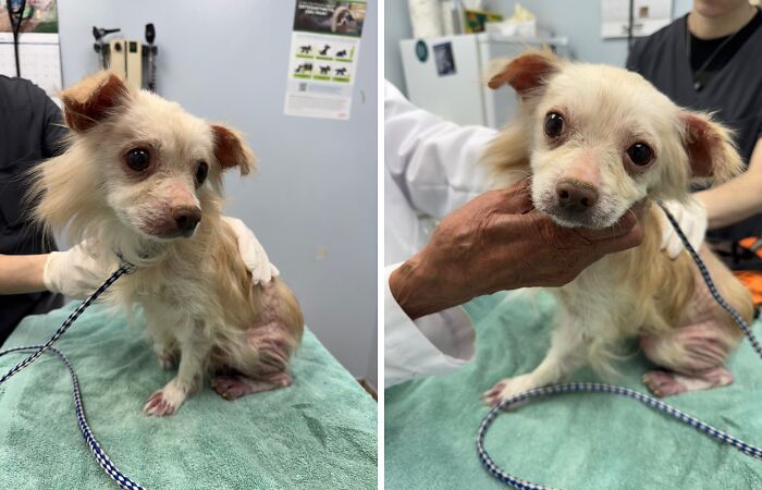 His nails had grown so long they curled into his own paws. His ears dripped pus from untreated infections. His skin was inflamed, raw, and patchy with significant hair loss from mange. Every inch of his small body told the story of prolonged suffering.