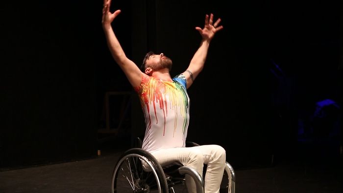 Kris spent months creating props and training in preparation to perform two powerful and evocative contemporary wheelchair dance pieces. He wants to show the world there’s more to wheelchair dance than ballroom.