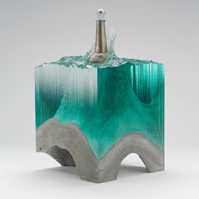 The artist doesn’t use any high-tech equipment. Instead, he hand-cuts and handcrafts all of the single glass panels himself, layering them one after the other to re-create the ocean’s subtle waves.