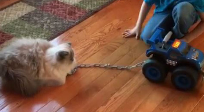 There’s lazy and there’s next level lazy that’s actually genius. But as this video shows, laziness isn’t something exclusive to humans – chunky twin Himalayan cats Bonnie and Clyde sometimes even need a tow to get around the house. Did I say chunky? Fluffy, I meant fluffy!
