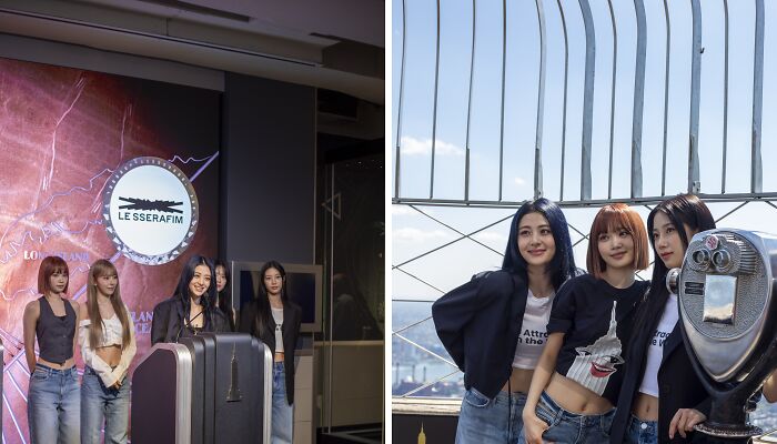 The Empire State Building, famous for lighting up in recognition of significant causes and celebrations, served as the perfect backdrop for this meaningful event. Towering over Midtown Manhattan, the landmark is known for being a beacon of hope and inspiration, aligning with the theme of LE SSERAFIM’s work with Make-A-Wish.