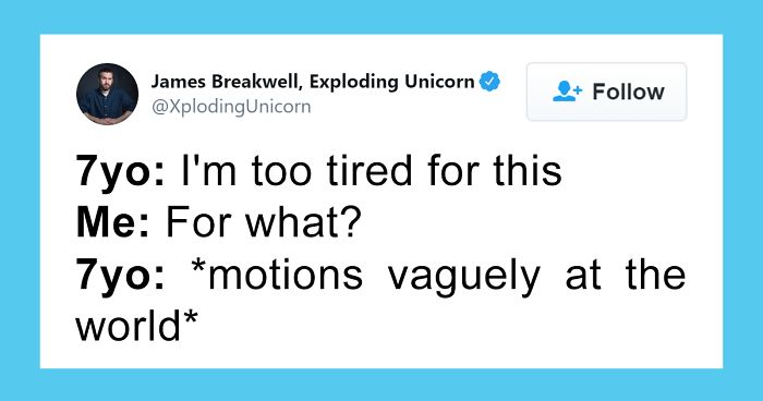 You never know when a mini-you will spit a bite-sized lesson on life instead of drool or something even nastier. Chances are, it’ll catch you completely off guard, too. For example, while driving them to the daycare to or making pancakes for breakfast. Luckily for us, parents whose kids are sharing their insights are tweeting these statements, so everyone can get to know the real scope of their innocent wisdom. It’s not the first time when their philosophical gems get viral. Earlier, Bored Panda has shown how cheeky 6-year-olds can be, lecturing their parents on every possible situation. This time, however, we’ve decided to focus on someone more mature — 7-year-olds. Below you’ll find a list that captures the smart world of a 7-year-old mind. Apparently, one year age difference might bring sassiness to a whole new level.