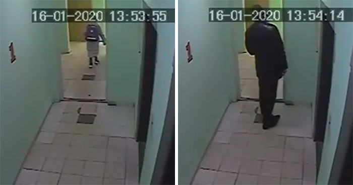 A video from Russia captured a story on CCTV that could have had a tragic ending if not for this little kid’s quick and clear thinking. In the town of Stupino, just over 60 miles away from Moscow, the creepy man from the video was arrested eventually after he followed a schoolgirl home, who managed to notice that fact in time and play a trick on him. It starts with the 9-year-old girl walking up to the front door, waiting for the door to open, and entering the building.