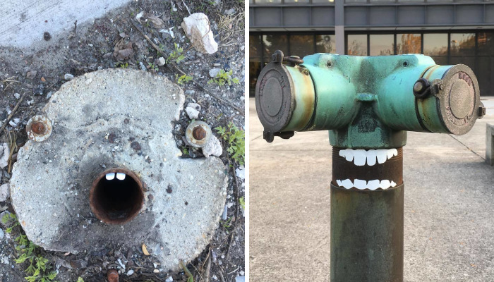 The inspiration came from street art stickers – I wanted to make my own using a vinyl cutter. They had to be simple, but unique. I liked the idea of playing with the environment. I designed smiles, teeth, and eyes that transformed objects into faces.