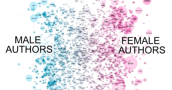 And the words on the right side are more likely to be written by women