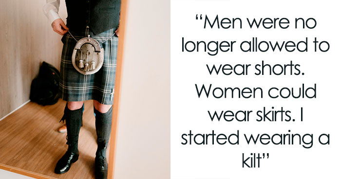 At a former workplace, the dress code was changed. Men were no longer allowed to wear shorts. Women could wear skirts. I started wearing a kilt, because skirts were ok in the rulebook.