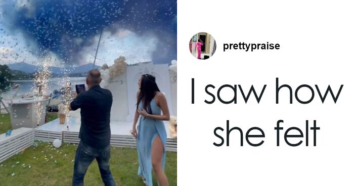 A man’s reaction at a sex reveal party divided opinions online after he seemingly forgot to celebrate with his partner that they were having a boy