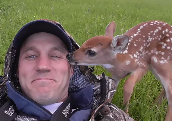 Darius fed her every 4 hours and his dog repeatedly licked the fawn’s face