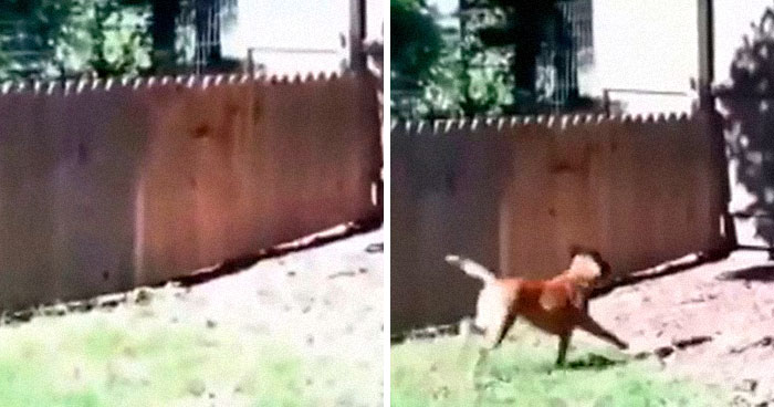 This 18-second-long tale documents a real-time conflict of an owner’s wish and his doggo’s will. The video shows a man flaunting his picture-perfect fence that’s supposed to keep Stella inside. “Pretty proud of it, I’d have to say,” the guy declares without a hint of doubt.