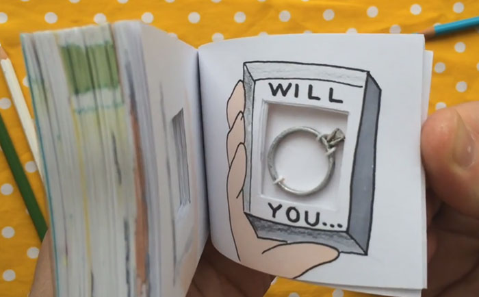 There are a million and one ways to pop the question, but these adorable proposal flipbooks one of the cutest ways to get engaged that we’ve ever seen. Ben Zurawski, the artist behind The Flippist, is a master flipbook artist whose animations are beautiful, fluid and absolutely heartwarming.