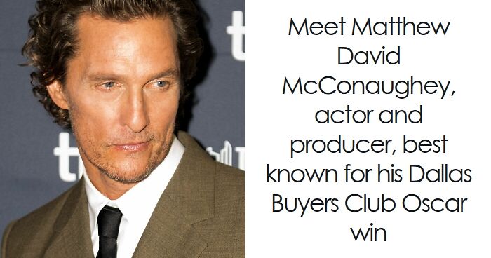 Matthew David McConaughey is an American actor and producer, celebrated for his commanding screen presence and laid-back charm. He masterfully shifts between intense dramatic roles and lighthearted romantic comedies, captivating audiences worldwide.