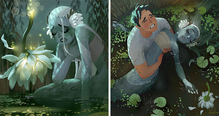 The story about the Green Mermaid and her love has been featured on Bored Panda before (part one and two)—however, this time, it has come to an end. Ukrainian artist Andy Ivanov has released the final part. The artist went in a different direction and created a prequel to the story release previously. He shows us how the mermaid and the human met, how it all started.