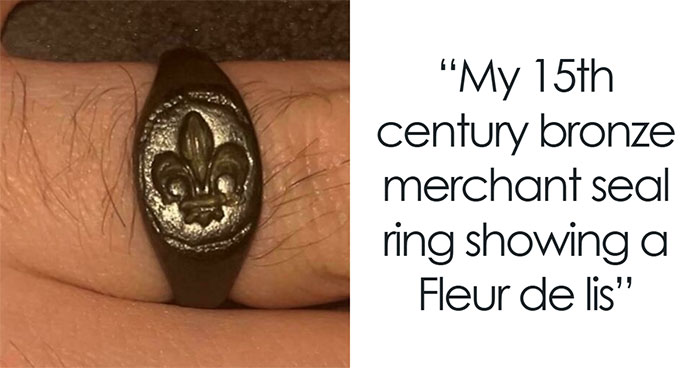 #3 My 15th Century Bronze Merchant Seal Ring Showing A Fleur De Lis