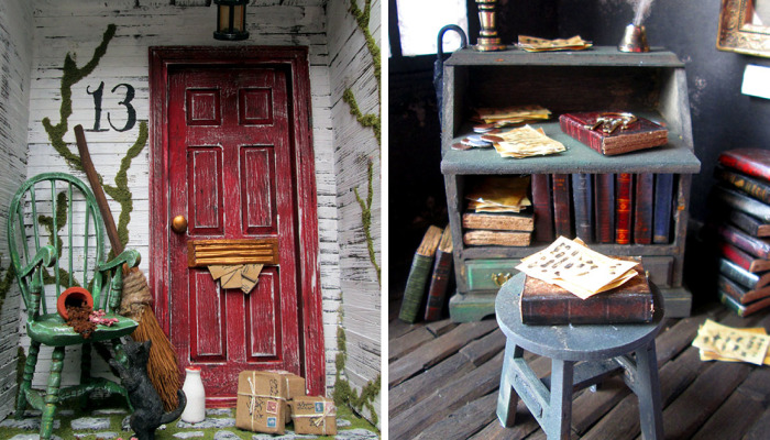 As my mood varies, so do the rooms I create – one Christmas I was feeling the season and created a scene from Charles Dickens’ Christmas Carol. I do prefer to create messy scenes involving lots of books. Even in sparse dungeons, I’ll hide books. Witches, wizards, potions, spell books, apocalyptic scenes – these are my bread and butter.