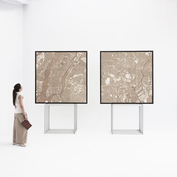 New York and Tokyo wooden maps – Metropolis Series by Hubert Roguski