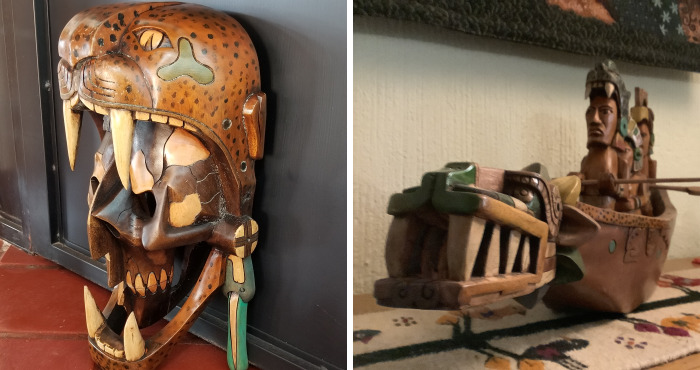 I collect many pieces of Mexican folk art. Many are in the old tradition but this young man from the Yucatán is creating a great path. The colors are from natural pigments and the carving is amazing. His father is Jose Ceme. Look either of them up on Facebook.