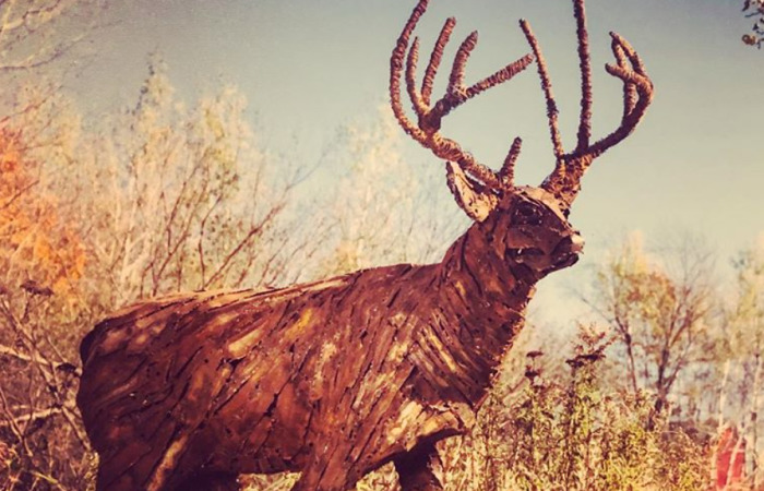 Midwest-based artists Eric & Faith Thomas take scrap foundry metal to create animal and human figures to transform outdoor space. The rusted statues blend with the natural changing colors of the four seasons and become reminiscent of the natural landscapes seen in the Northwoods. The figures appear to be in motion bringing the reclaimed metal to life.