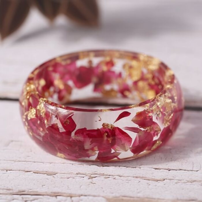 This mesmerizing flower bangle captures the archetype of natures beauty and adds a vintage flair to your look. Natural and organic handpicked leaves and flowers are carefully pressed and preserved in a beautiful clear resin glass.