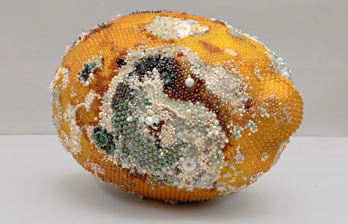 Who could have thought that moldy, rotten fruit could be beautiful? As it turns out, anything is possible at the hands of talented artist, Kathleen Ryan. Ryan has perfected the art of turning fruit sculptures into mesmerizing, moldy-looking works of art. To make all types of fruits, she uses a polystyrene base measuring up to 28 inches in width. The artist then proceeds to paint the patterns of the mold and tops it off by individually placing dozens of precious and semi-precious gemstones to create the decay. The ultimate result of her unique artworks are mesmerizing – for a split second, the gems create an illusion of real mold, but then you realize you’ve been tricked by excellent craftsmanship. Ryan uses a variety of gemstones such as opal, smoky quartz, malachite, and many others for her beautiful sculptures.