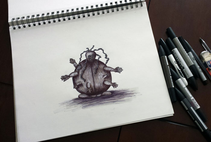 I start of my drawing with a simple line and couple of seconds later, it turns into a weird creature that I can’t even explain myself. Hope you enjoy these little monster doodles as much as I enjoyed drawing them.