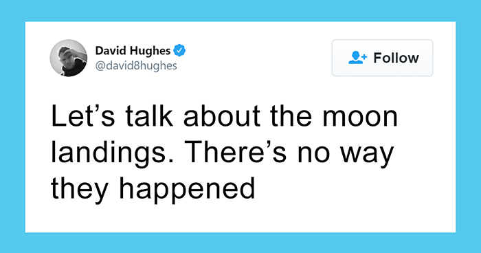 “I decided to do the moon landing tweets because the concept was funny to me, I liked the idea of poking fun at conspiracy theorists by being one of them,” David told Bored Panda.