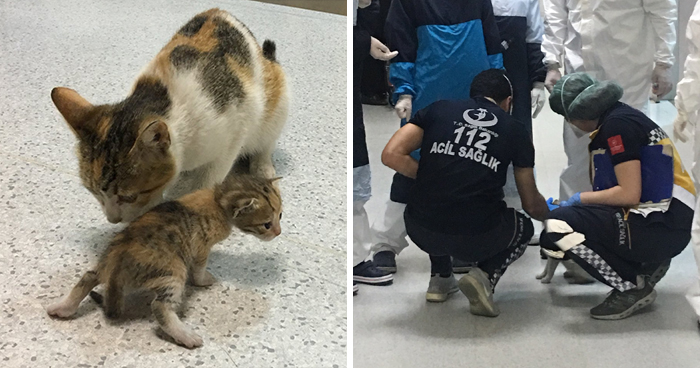 Recently, in Istanbul, a stray cat mom took her baby kitten to the ER