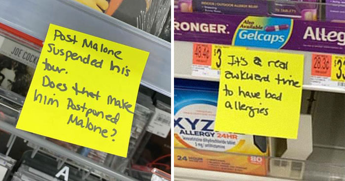 Mother-of-five Amy Cook, who lives in Findlay, Ohio, decided that the employees at her local Walmart needed some cheering up. That’s why she stuck dozens of witty and wholesome sticky notes all over the supermarket.