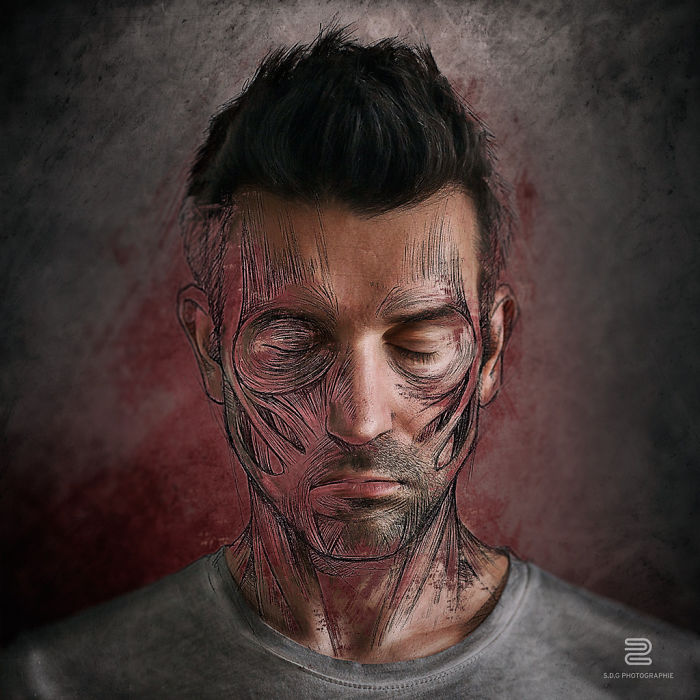 This time, I wanted to study the human muscles. I did some sketches and added them to photos with Photoshop.