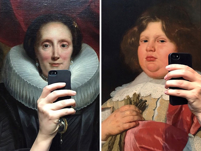 Olivia Muus, a designer and marketer based in Denmark, has created a series of fun and light-hearted photo manipulations of old portrait paintings in art museums that make it look as if their subjects are taking selfies. Her series is the perfect marriage of historical paintings and everyone’s favorite modern reinterpretation of the portrait – the selfie.