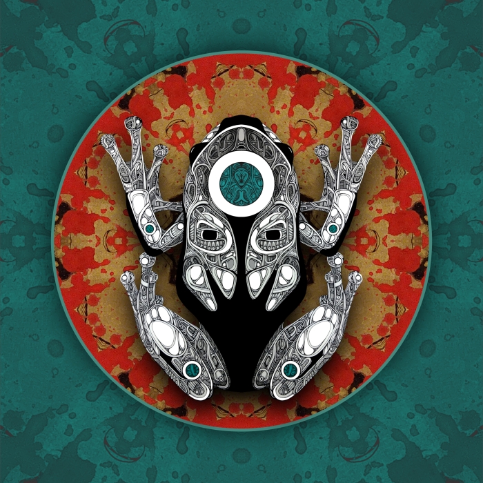 All frogs are drawn in ink with pencil, marker, or watercolor and then digitally manipulated.