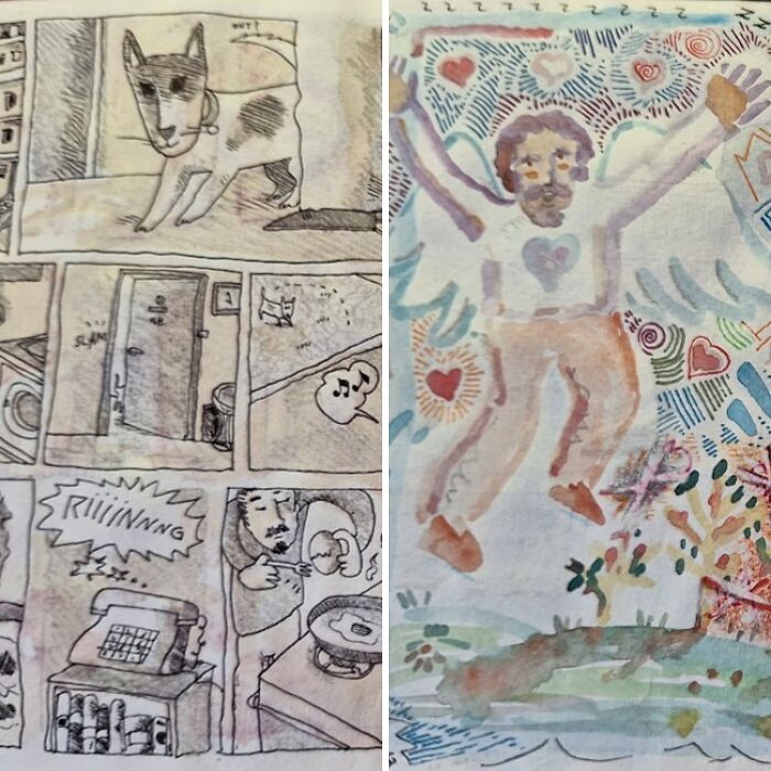 I never published the diary but I want to share some pages now with “Bored Panda” as I believe art forms a connection, bringing together people who can find comfort in knowing they are not alone. The diary has a code, made often in color.