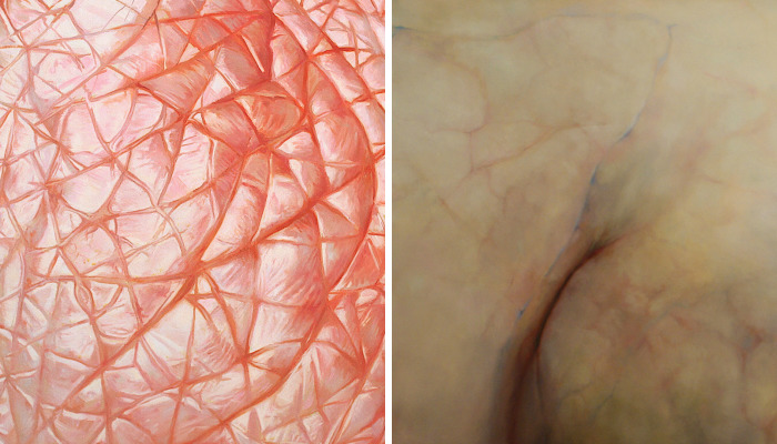 My paintings are large scale, hyperrealistic renditions of microscopic sections of human skin, which serve as an investigation of emotional and psychological landscapes translated through the visual analysis of flesh.