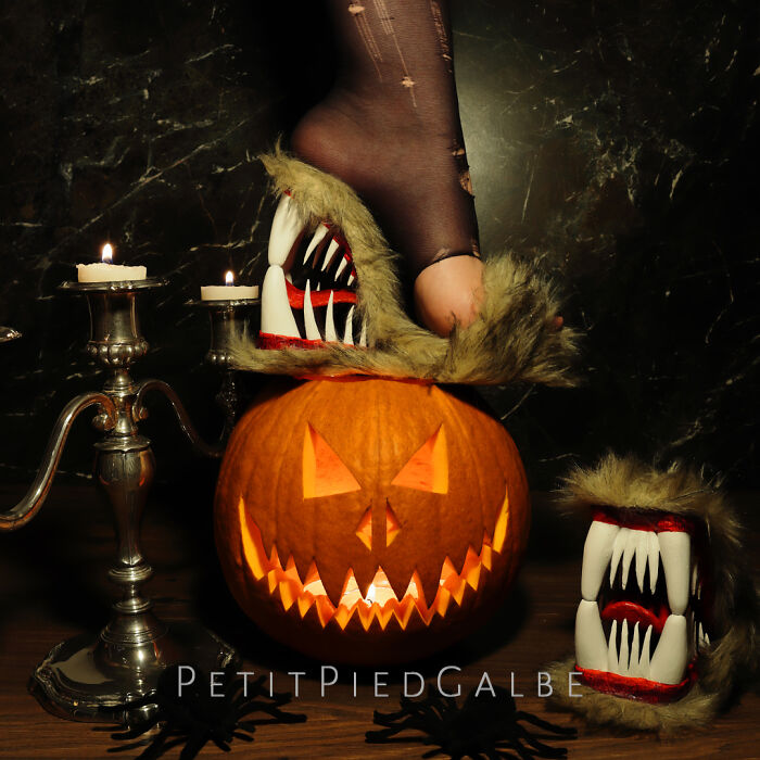 The idea for these shoes was born in my head a few months ago, I thought about making shoes that will be at the same time: spooky and scary but also charming and mostly unique. As with my previous shoe projects, I started by making hand-drawn sketches. Shoes were made from several materials like cardboard, metal rods, and paper pulp. Then I painted them with acrylic paints and finally covered them with artificial fur. I called them ‘Fury Furs’ and because of their spooky freaky look, I decided to showcase them publicly at Halloween for the first time.