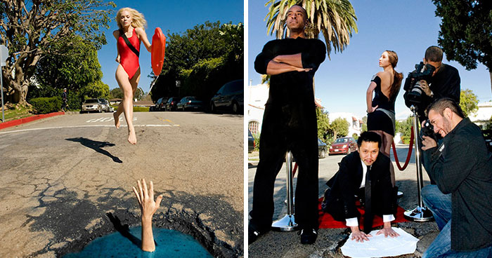 The idea for this project was born out of their individual experience after hitting a pothole in their own neighborhood in Montreal. First using themselves as models, Claudia and Davide were soon backed by their family and friends and the creative juices started running wild. What started off as a joke turned into quite a fun experience, taking them to cities like Toronto, New York, and Los Angeles. The artists say they’ve learned that sometimes changing our perspective on things is more important than actually fixing them.