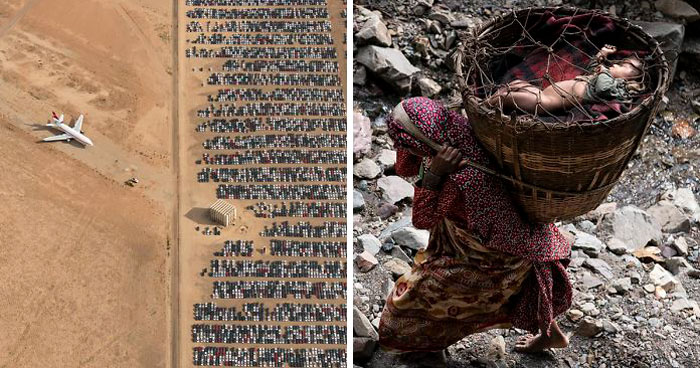 This year’s photo contest grand prize winner was Jassen Todorov, a violinist and professor of music at San Francisco State University, whose aerial shot shows a vast boneyard in Southern California’s Mojave Desert. The area is well known for storing retired aircraft, where the dry air keeps corrosion away before they are eventually dismantled and scrapped for parts. What many are unaware of, however, is the huge stretch of land nearby that is set aside for recalled vehicles and is filled with row-upon-row of Audis and Volkswagens that cheated emissions tests between 2009-2015. “I have flown and explored the Mojave Desert area quite a few times,” Jassen said Bored Panda about the Nat Geo’s best picture of 2018. “There are several airports in the Mojave, and at least 3-4 of them have large boneyards, which I have explored and photographed. It was my first photo flight over Southern California Logistics Airport. I had done some research using google maps, so I had a general idea of the position of the cars around the airport.”