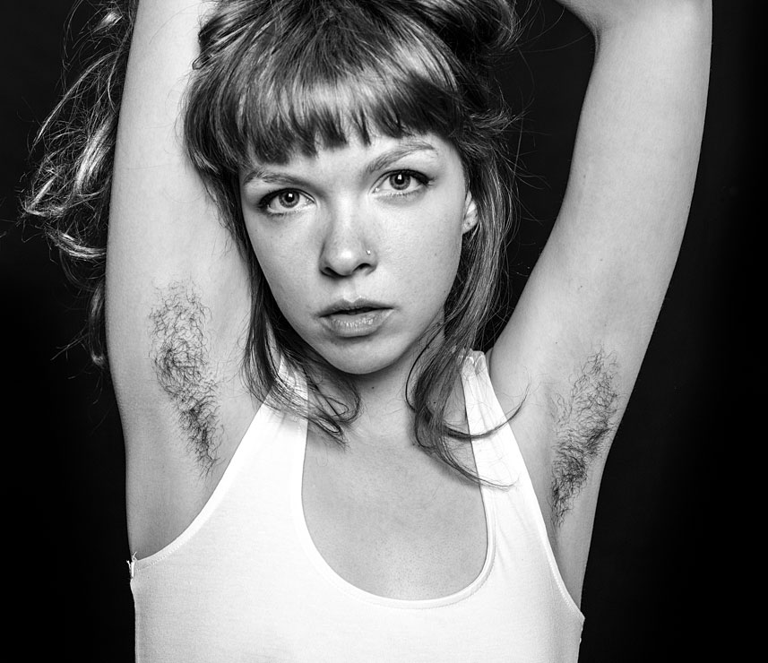 As Hopper explains on his website, “Although armpit hair is a natural state it has become a statement. Why is that? For almost a century we have been brainwashed by the beauty industry, encouraging hair removal. By creating a contrast between common ‘fashionable’ female beauty and the raw unconventional look of female armpit hair thoughts are intrigued and a discussion is made.”