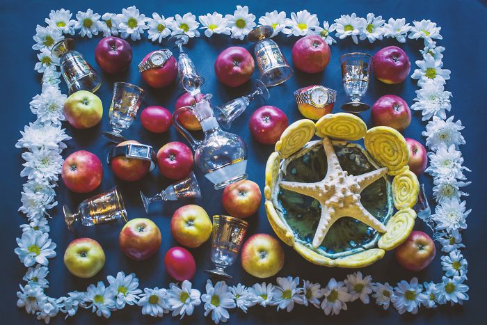 I decided to try a different naturmort project, inspired by the vue from the above.