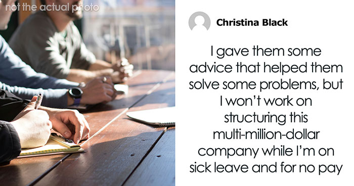 Lately, they have experienced management challenges and financial losses, as they lack the knowledge and experience. I gave them some advice that helped them solve some problems, but I won’t work on structuring this multi-million-dollar company while I’m on sick leave and for no pay. So, they offered me a permanent consultant job on their payroll. It should be noted that the business associate’s daughter works as VP of administration in this company.